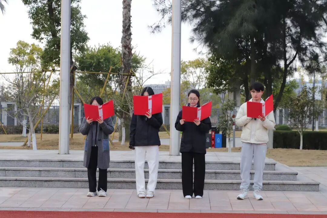 升旗仪式结束后,四位学生带领全体同学进行爱国诗歌朗诵。一字一句,铿锵有力,诉说着当代青年应有的担当。朗朗诵读声里,是他们对祖国的深情,也是对未来的承诺。