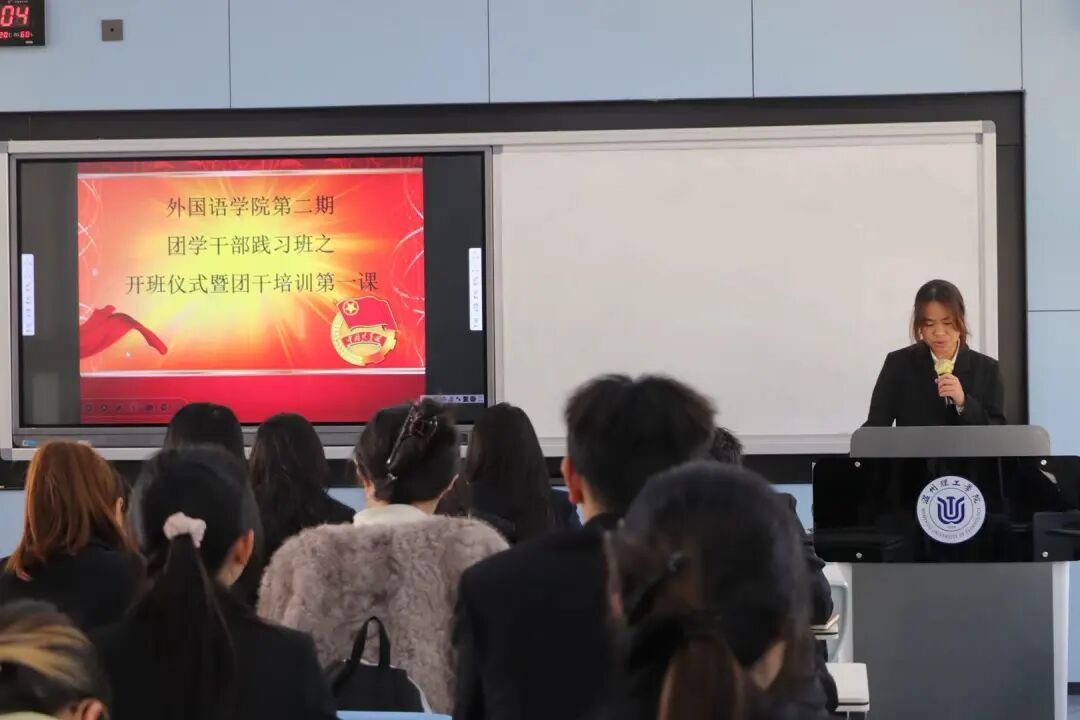 为加强团学干部队伍建设,提升团学干部的思想素养与实践能力,温州理工学院外国语学院2025-2026学年第二期团学干部践习班开班仪式暨团干培训第一课于4月1日在滨海校区教学楼2B-106教室顺利开展。活动邀请外国语学院学生会执行主席黄雅澜学姐、主席团成员蔡钰铉学姐,外国语学院第五届团委学生会全体成员共同参与。