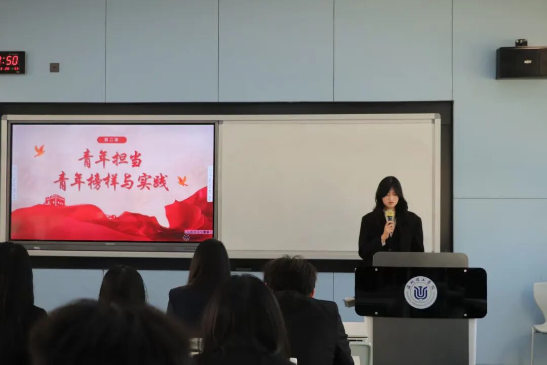 然后,蔡钰铉学姐分享了杨振宁等时代榜样的爱国事迹,也列举了扎根基层、深耕科研领域的青年榜样群像,生动诠释了“功成不必在我,功成必定有我”的担当精神,同时号召全体团学干部在各领域主动作为、挺膺担当。课程最后,蔡钰铉学姐以习近平总书记对青年的寄语作结,提出理论学习、实践服务等常态化行动倡议,鼓励大家立足岗位、实干笃行。